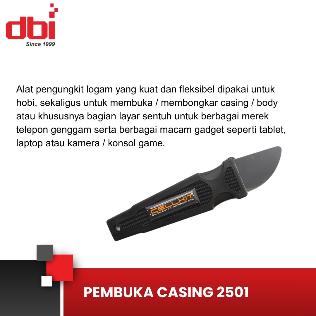 Alat pengungkit logam yang kuat dan fleksibel dipakai untuk hobi, sekaligus untuk membuka / membongkar casing / body atau khususnya bagian layar sentuh untuk berbagai merek telepon genggam serta berbagai macam gadget seperti tablet, laptop atau kamera / konsol game.