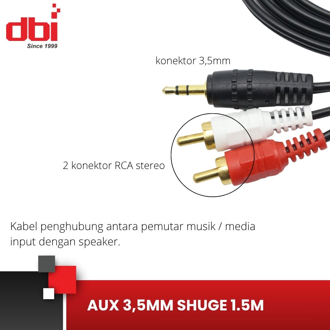 Kabel penghubung antara pemutar musik / media input dengan speaker. Dengan konektor 3,5mm dan di sisi lain berupa 2 konektor RCA stereo.