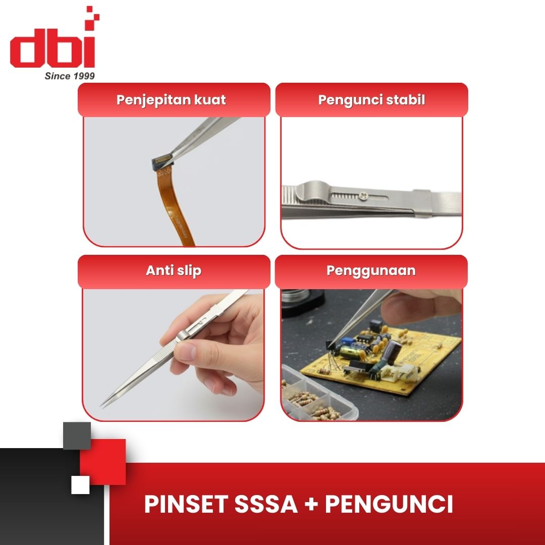Pinset tang ujung lurus dilengkapi dengan penjepit pengunci berbahan stainless steel, presisi yang memudahkan untuk mengambil dan menjepit benda-benda kecil saat melakukan servis / aktivitas lain. Penjepit stylist ini wajib dimiliki oleh para teknisi dan pekerja.