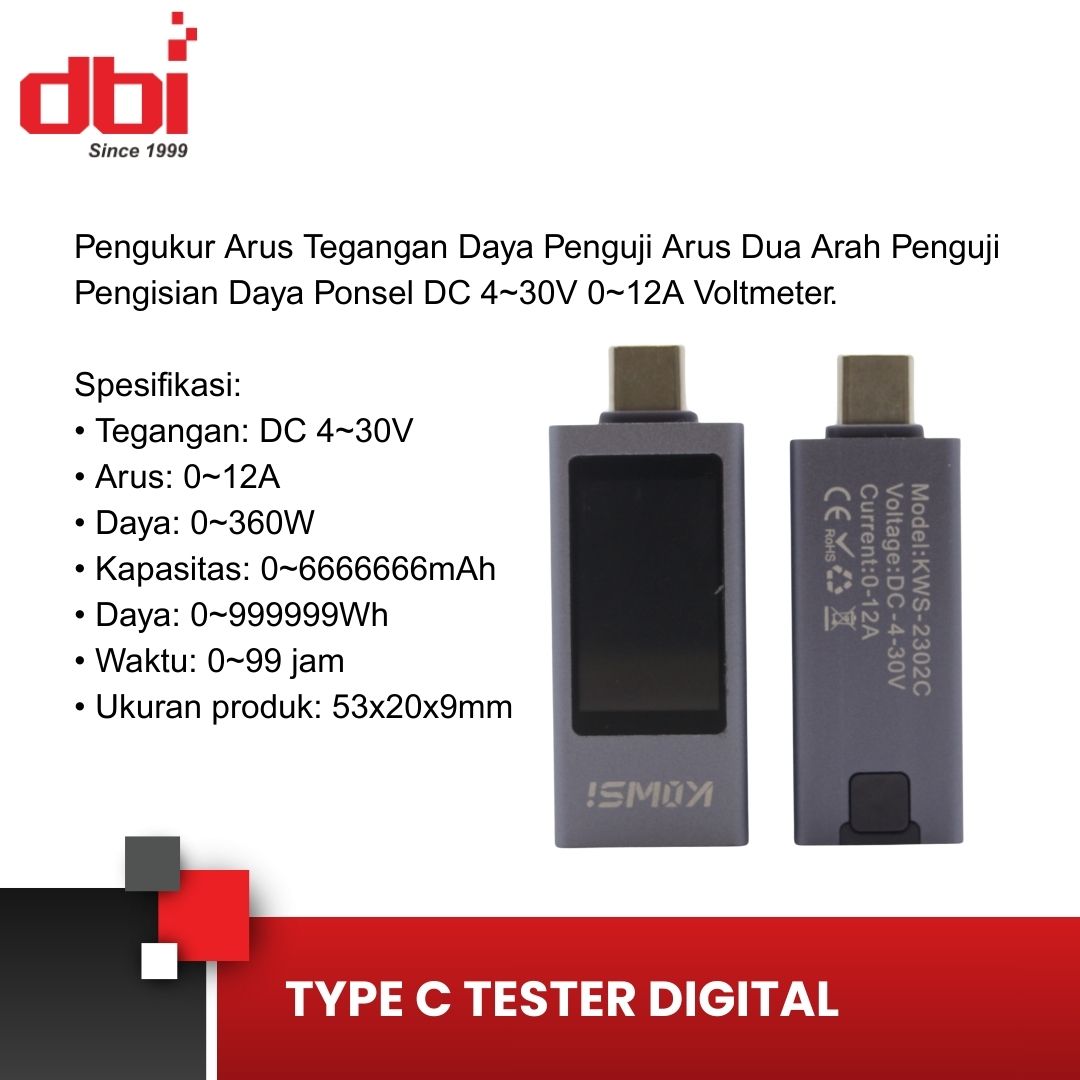 KEWEISI KWS 2302C/2303C Type C Pengukur Arus Tegangan Daya Penguji Arus Dua Arah Penguji Pengisian Daya Ponsel DC 4~30V 0~12A Voltmeter