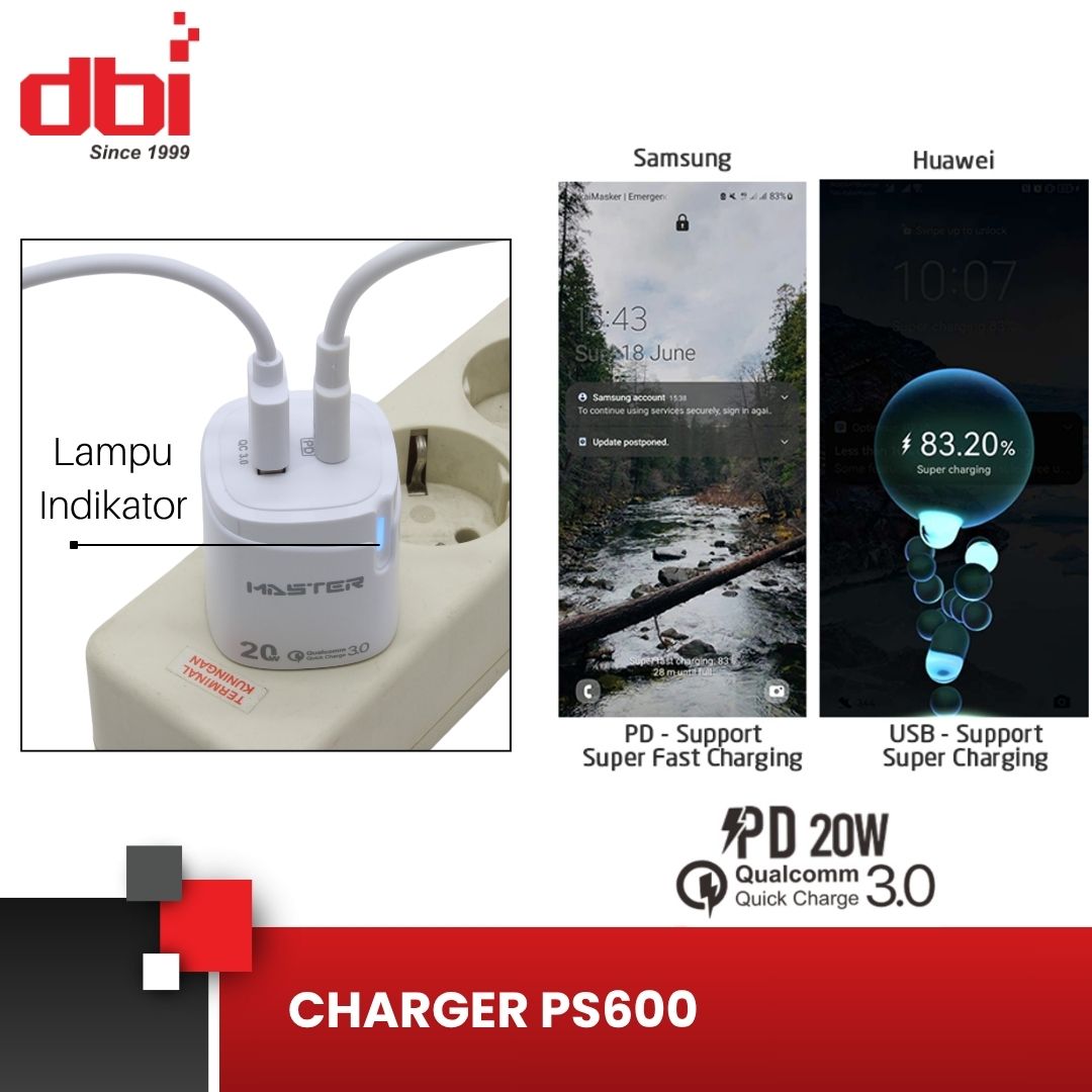 CHARGER 1USB+1PD 20W MASTER LITE PS600