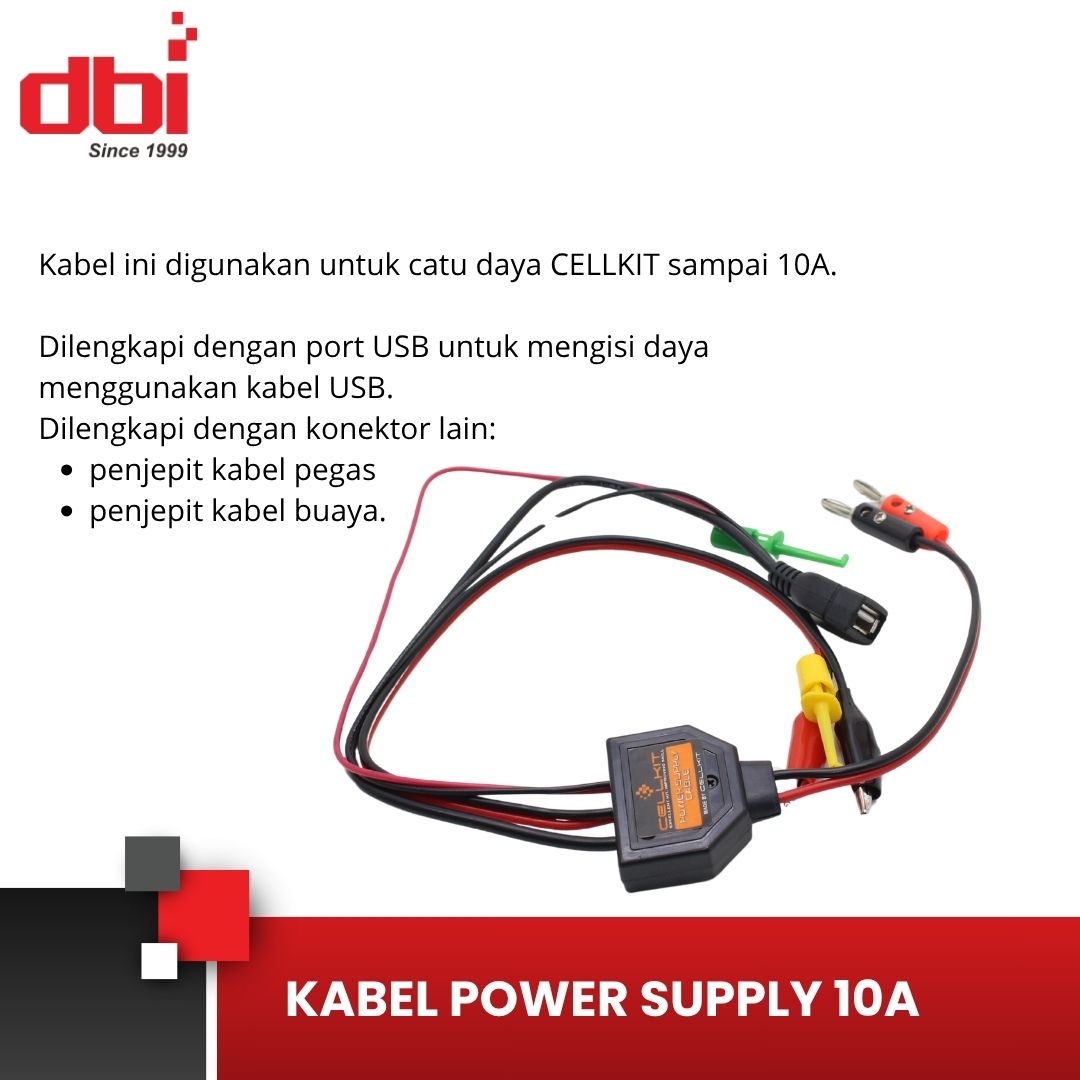 Kabel ini digunakan untuk catu daya CELLKIT sampai 10A. Dilengkapi dengan port USB sehingga bisa digunakan untuk mengisi daya menggunakan kabel USB.