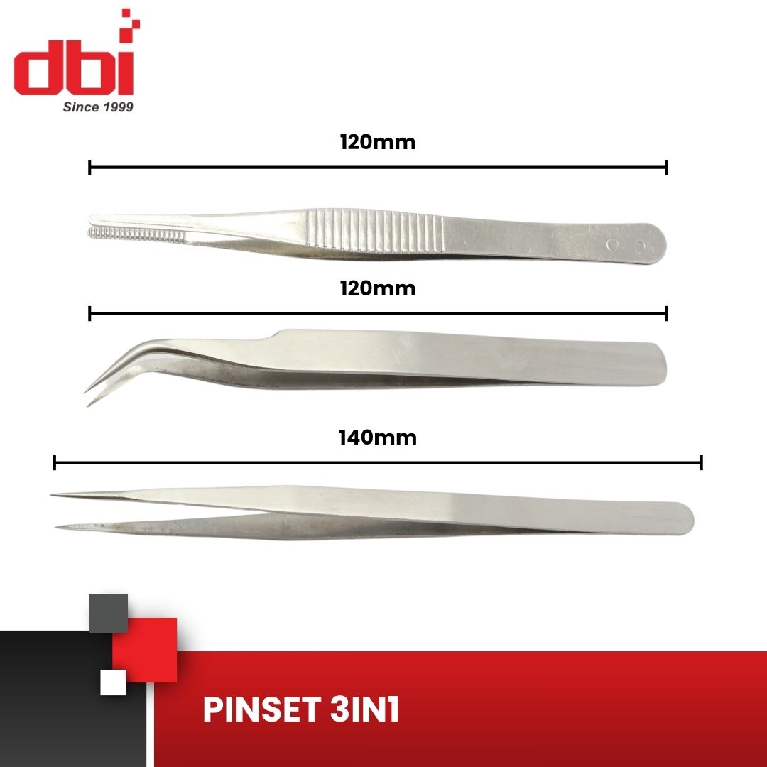 Perangkat penjepit yang ringkas, praktis, dan ekonomis ini adalah alat utama yang harus dimiliki. Pinset ini terdiri dari 1 pinset bengkok, 1 pinset lurus lancip, 1 pinset anatomi memiliki ujung tumpul halus.