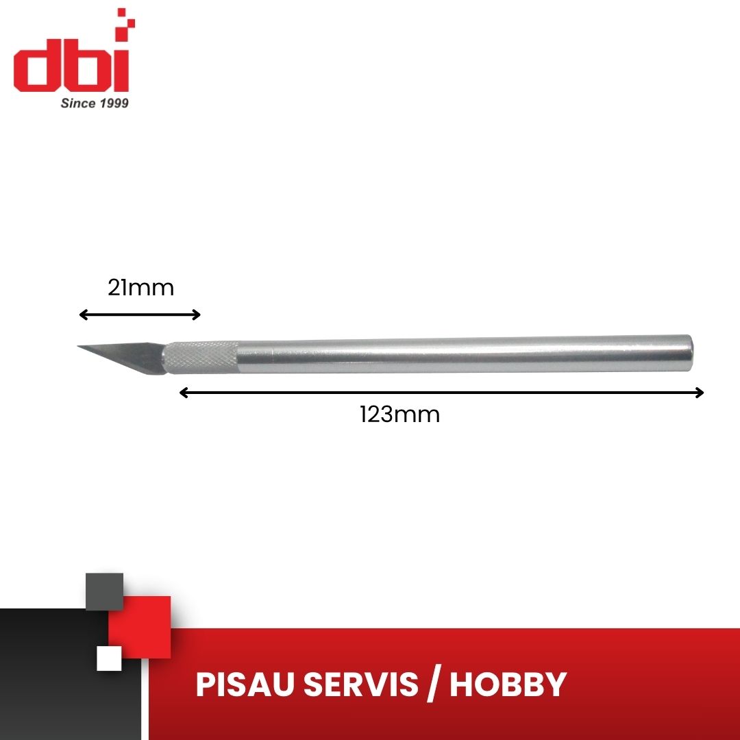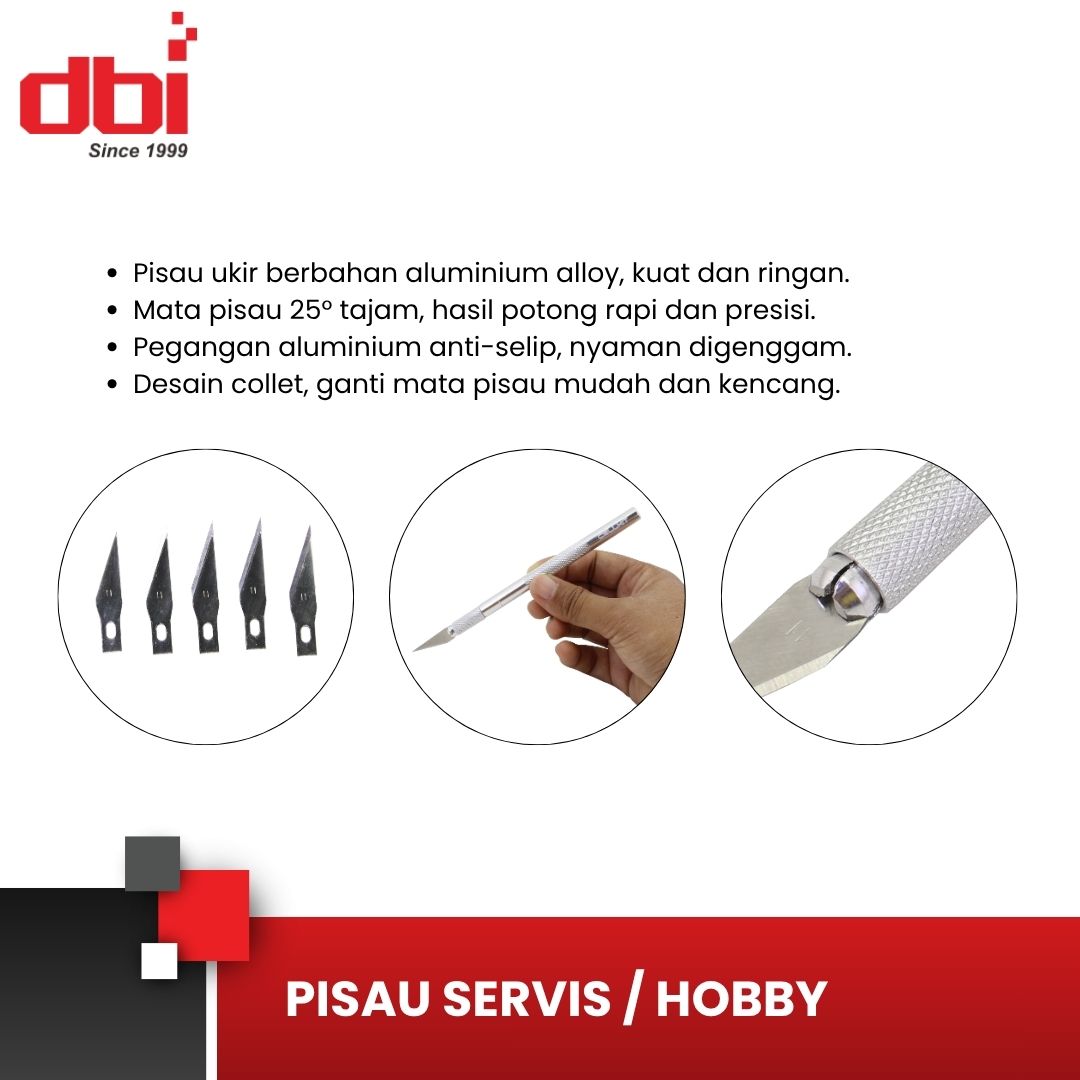 Pisau ini adalah alat serbaguna yang memiliki desain kokoh. Dibuat ringan dan cocok untuk perbaikan, kerajinan dan hobi. Bahan pegangannya terbuat dari paduan aluminium dan bebas karat.